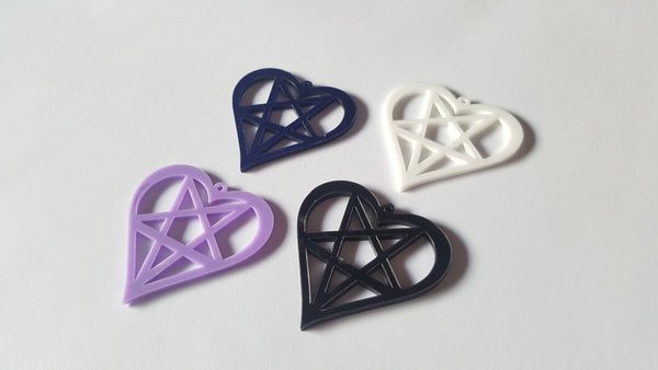 1 x Laser Cut Acrylic Heart Pentagram Pendant - 50mm - Dark Blue
