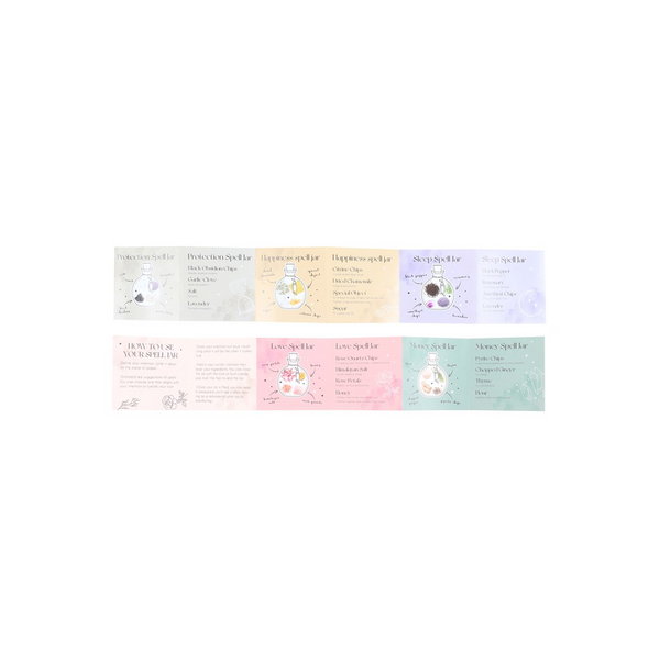 Whether it's a spell for love, luck, protection or any other desire, this spell jar can be used as physical representation to help amplify energy and make manifestations a reality. Fill the jar with elements which align with the spell being created and store the jar somewhere as a daily reminder to help bring focus on the spell. This glass spell jar comes with a handy spell recipe booklet making it a thoughtful gift idea.