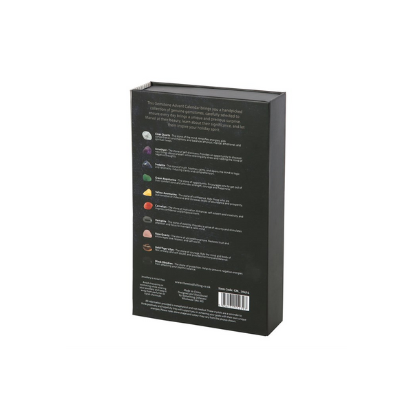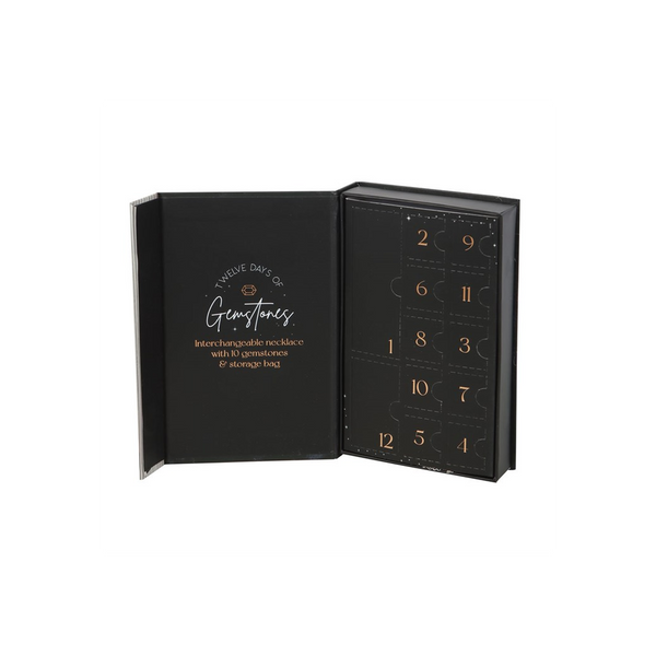 Celebrate the countdown to Christmas with the crystal necklace advent calendar. This beautiful advent calendar includes an interchangeable necklace with 10 different gemstones and a handy storage bag. Each day reveals a new gemstone to add to your collection. The gemstones featured in this advent calendar are clear quartz, amethyst, sodalite, green aventurine, yellow aventurine, carnelian, hematite, rose quartz, gold tiger's eye and black obsidian. Size, shape and colour of stones may vary, making each crystal unique.