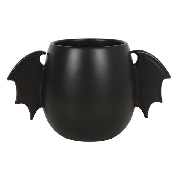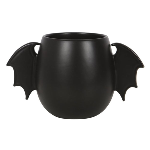 You will go batty for this unique mug design! A pair of bat wings replaces a traditional mug handle and a sleek, black finish makes it a great choice for all kinds of delicious brews. 500ml capacity. Hand wash only. Do not microwave. Product Dimensions: H8.8cm x W15.5cm x D9cm Packaged Dimensions: H11.5cm x W16.5cm x D11cm