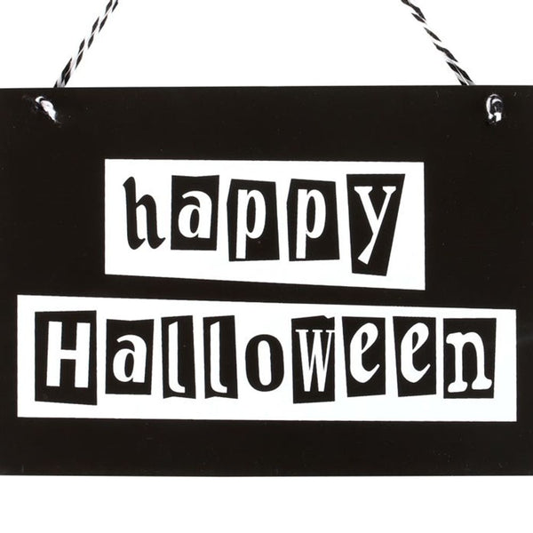 This hanging sign with a 'Happy Halloween' print offers a perculiar style that's sure to give the home an eerie edge. Designed in a black and white colourway for maximum impact.