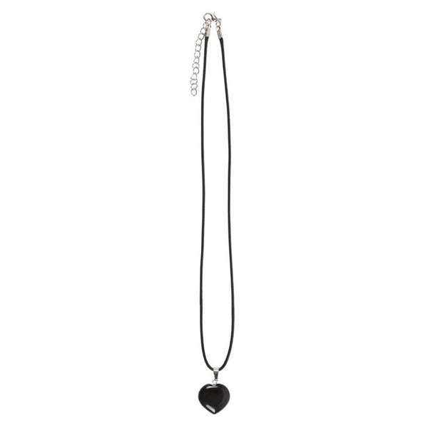 Promote strength and protect against negative energies with this black obsidian healing crystal heart necklace. Empowers the owner with an extra dose of positivity, strength, and care. Strung on a 16" cord with lobster clasp and extender chain.