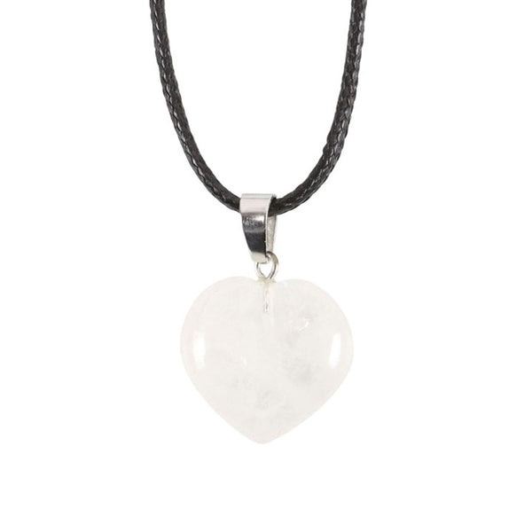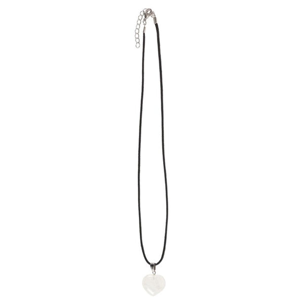 Promote clarity, peace and the purification of negative energies with this clear quartz healing crystal heart necklace. Empowers its owner with an extra dose of positivity, strength, and tender care. Strung on a 16" cord with lobster clasp and extender chain.