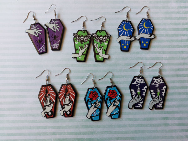 Coffin Earrings - Rose (Blue)