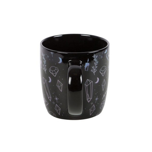 Feel magically restored after sipping your preferred potion from this enchanting mug featuring a captivating black crystal magic design. Perfect for any mystical gathering, it's sure to make every sip a spellbinding experience. Microwave safe. 360ml.