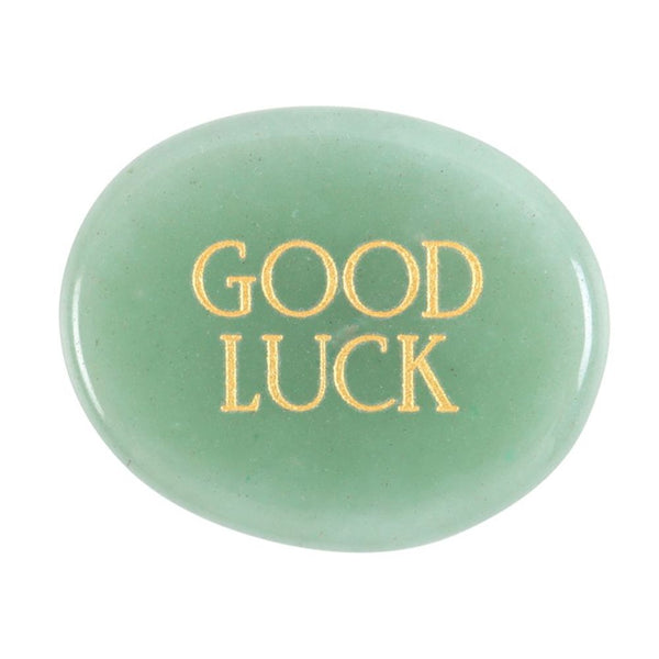 This healing green aventurine palm stone is accented by engraved gold-toned 'good luck' text, making it a meaningful token of positivity. The stone's prosperous energy enhances its unique healing properties. Presented with an informational insert card and drawstring bag for safekeeping, this gift makes a cherished gesture of good fortune.