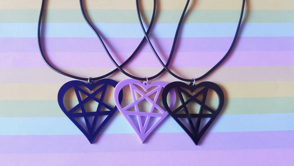 * acrylic pendant hung from black rubber cord * fastens with silver tone lobster clasp fastener * total length of cord measures approx. 18" (plus extender chain) * pendant measures approx. 50mm x 45mm