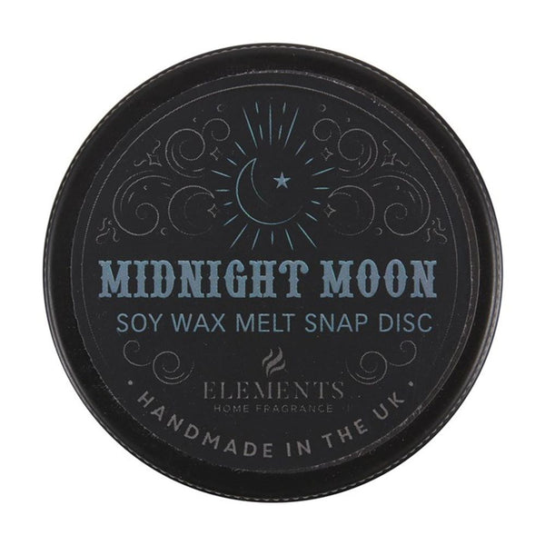 This Midnight Moon wax melt tin from our Gothic home fragrance range comes in a new, easy-to-use disc form. Each 25g disc is divided into 4 sections for up to 45 hours of long-lasting fragrance. Handmade in the UK from 100% vegan soy wax and high-quality fragrance oil blends, our soy wax melts are non-toxic and completely biodegradable. Also available in a display with 7 other bewitching scents. Scent description: Notes of blood orange, madarin, bergamot and neroli mingle amongst a heart of yellow freesia, osmanthus and peach on a base of sandalwood and musk. Perfect for nights under the full moon.