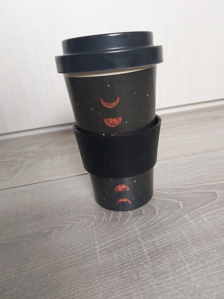 * made from durable bamboo * size approx. 15cm x 9cm x 9cm * lid features rubber stopper to prevent spillages * comes with matching silicone sleeve * moon phases design
