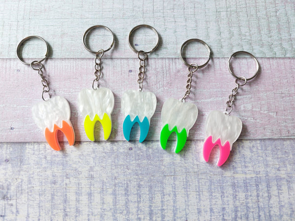 * acrylic pendant hung from a silver tone split ring keyring loop