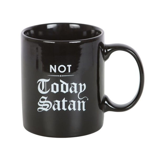 Keep your demons at bay with this funny ceramic mug. Features 'Not Today Satan' text written in gothic lettering for warding off unwanted hooved guests.300ml capcity. Microwave safe.