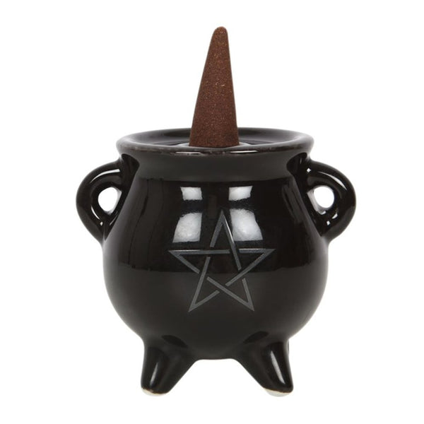 Whether used with incense sticks or cones, this ceramic cauldron incense holder makes a quirky home fragrance gift for any witch. A printed pentagram symbol finishes off this unique design. Product Dimensions: H6cm x W6.8cm x D5.5cm Packaged Dimensions: H7cm x W6cm x D6cm