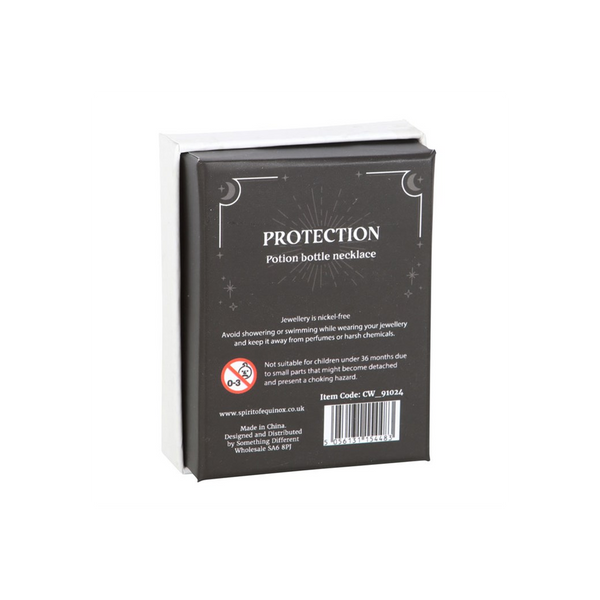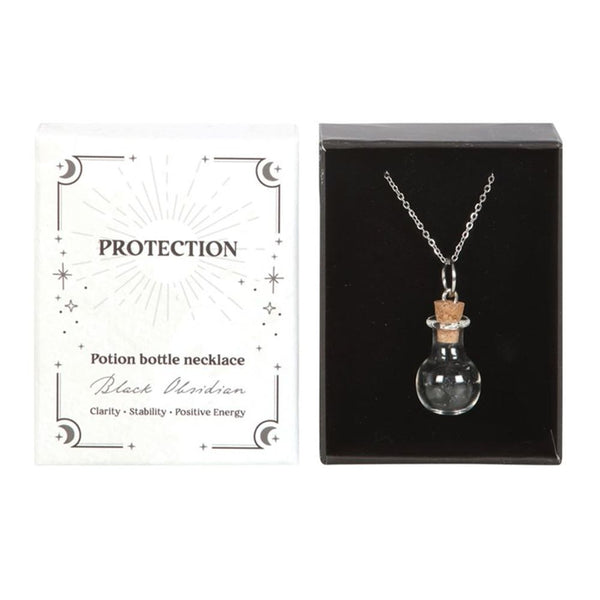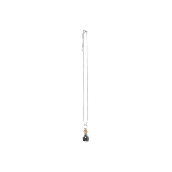Give the gift of crystal magic with this miniature potion bottle necklace. With natural black obsidian chips and a cork stopper, this necklace serves as a spellbinding accessory while repelling negative energies and promoting stability. Presented in a matching gift box and perfect for that special witch in your life. Plastic bottle on a nickel-free stainless steel chain.