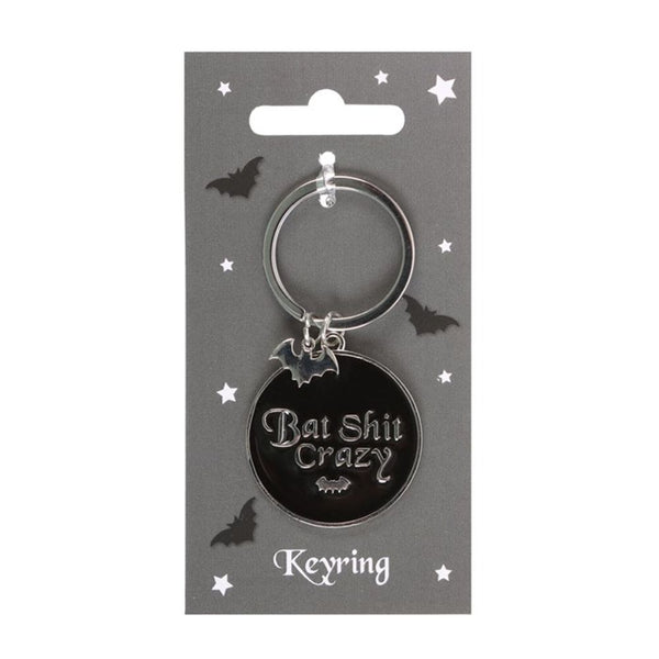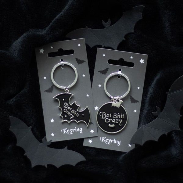 Being normal is overrated. This round 'Bat Shit Crazy' keyring features a tiny bat charm and is a funny reminder to embrace your dark side and that it's cool to be a bit off-kilter.