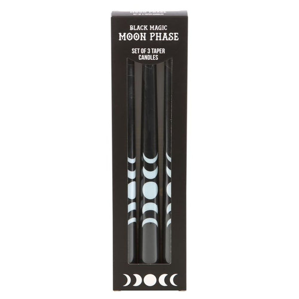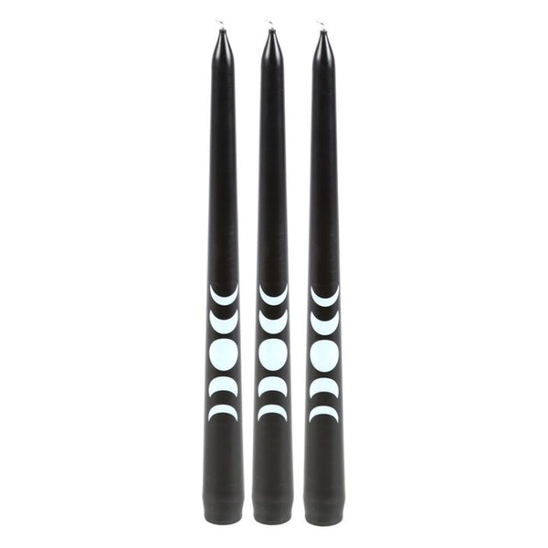 This pack of 3 black taper candles are perfect for adding final finishing touches to a table setting or adding decorative accents around the home. Adorned with a mystical moon phase design, the candles offer the perfect blend of elegance and celestial symbolism and are a must-have for anyone seeking to add a unique touch to their living space.