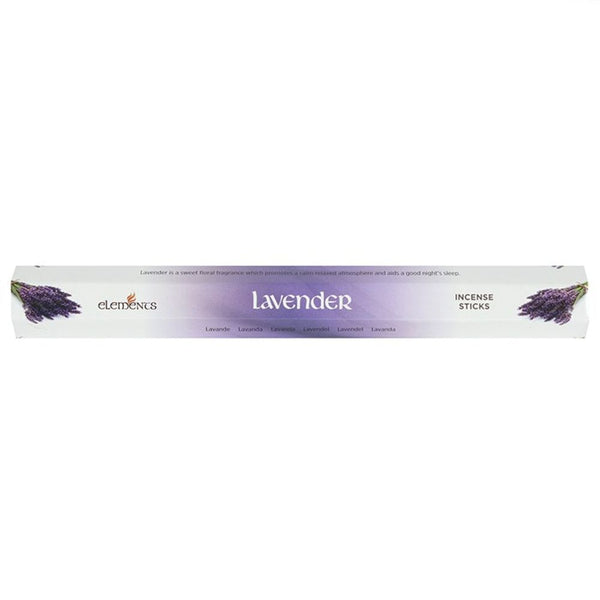 A box of 6 packs of Lavender fragranced incense sticks by Elements. Each pack contains 20 incense sticks. Product Dimensions: H2.5cm x W24cm x D3cm Packaged Dimensions: H5.5cm x W25cm x D8.5cm