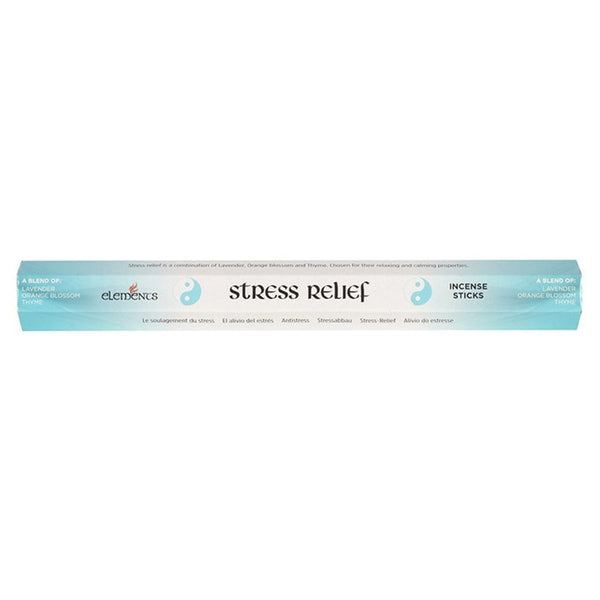 A display box of 6 packs of Stress Relief fragranced incense sticks by Elements. The scent of these sticks includes notes of lavender, orange blossom and thyme. Each pack contains 20 incense sticks. Product Dimensions: H2.5cm x W24cm x D3cm Packaged Dimensions: H5.5cm x W25cm x D8.5cm