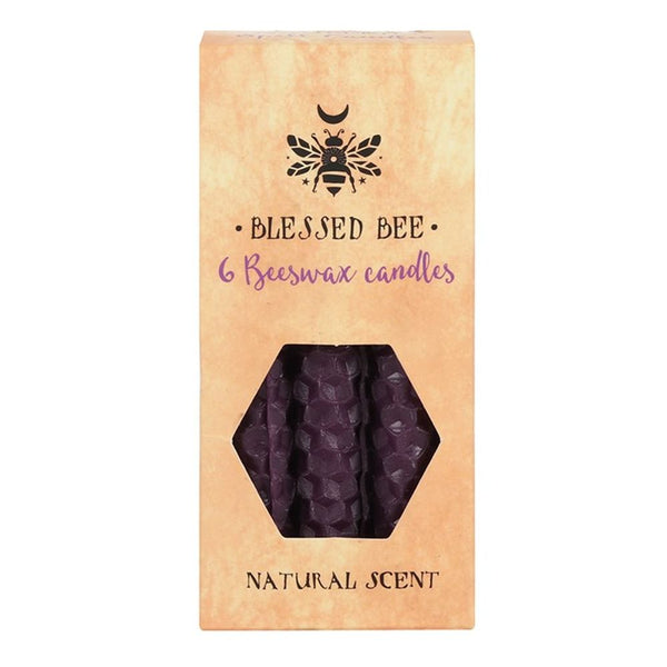 A box of 6 purple Blessed Bee beeswax candles useful for spellwork involving prosperity and overcoming obstacles. Light, natural scent. Approximate burn time of 1 hour. 100% linen wick. Non-toxic. Product Dimensions: H11cm x W5.5cm x D3cm Packaged Dimensions: H11cm x W5.5cm x D3cm