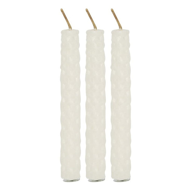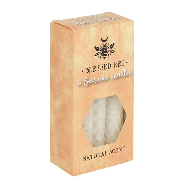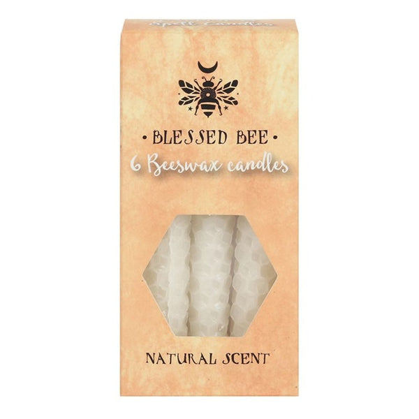 A box of 6 white Blessed Bee beeswax candles useful for spellwork involving peace and happiness. Light, natural scent. Approximate burn time of 1 hour. 100% linen wick. Non-toxic. Do not ingest. Product Dimensions: H11cm x W5.5cm x D3cm Packaged Dimensions: H11cm x W5.5cm x D3cm