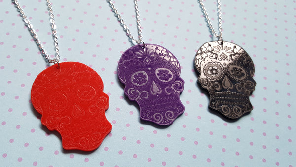 * engraved acrylic pendant hung from silver plated chain * fastens with silver tone lobster clasp fastener * total length of chain measures approx. 16" * pendant measures approx. 50mm x 36mm