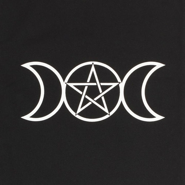 Perfect for doing the weekly shop, carrying library books, holding essentials for short day trips and more, this cotton tote bag makes a great eco-friendly addition to anyone's collection. Features a triple moon design printed on black with a pentagram in the centre. 40cm tall, not including handles.